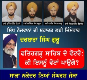 ਮਨੁੱਖੀ ਅਧਿਕਾਰਾਂ ਦੇ ਰਾਖਿਆਂ ਨੇ ਦਰਬਾਰਾ ਸਿੰਘ ਗੁਰੂ ਵਿਰੁੱਧ ਖਾਸ ਤੌਰ ‘ਤੇ ਫਤਹਿਗੜ੍ਹ ਸਾਹਿਬ ਦੇ ਚੋਣ ਖੇਤਰਾਂ’ ਚ ਸੋਸ਼ਲ ਮੀਡੀਆ ਮੁਹਿੰਮ ਸ਼ੁਰੂ ਕੀਤੀ ਹੈ। ਚੋਣਾਂ ਦੇ ਵਿਚਕਾਰ, ਇਸ ਕੇਸ ਨੂੰ ਯਾਦ ਕਰਨ ਲਈ ਧਾਰਮਿਕ ਸਮਾਗਮਾਂ ਦਾ ਆਯੋਜਨ ਕੀਤਾ ਜਾ ਰਿਹਾ ਹੈ । ਸ਼ਹੀਦਾਂ ਨੂੰ ਸ਼ਰਧਾਂਜਲੀ ਭੇਟ ਕਰਦਿਆਂ ਨਾਲ ਨਾਲ ਵੋਟਰਾਂ ਦੇ ਦਿਮਾਗ ਵਿੱਚ ਇਨ੍ਹਾਂ ਦੋ ਉਮੀਦਵਾਰਾਂ ਦੀ ਭੂਮਿਕਾ ਦਰਜ ਕਰਵਾ ਕੇ ਅਪੀਲ ਕੀਤੀ ਜਾ ਰਹੀ ਹੈ ਕਿ ਲੋਕ ਇਨ੍ਹਾਂ ਨੂੰ ਵੋਟ ਨਾ ਪਾਉਣ ।