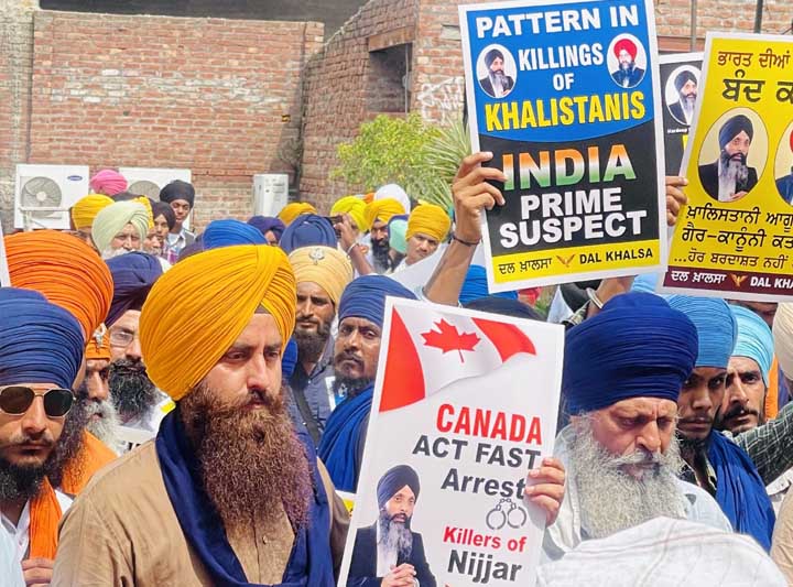 Nearly a hundred  Dal Khalsa activists led by Paramjit Singh Mand were protesting the extrajudicial murders of Sikh insurgent Paramjit Singh Panjwar in Pakistan and pro-Sikh freedom protagonist Hardeep Singh Nijjar in Canada, alleging that these were covert acts of the Dirty Tricks Department of India’s intelligence bodies, led by the RAW -Research And Analysis Wing.