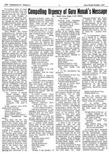 16. It is this basic humanity of Guru Nanak and his concern for the downtrodden which makes his appeal so irresistible today. Indeed his teachings are not only relevant to the problems of today, but also acquire a compelling urgency in our quest for the attainment of happiness and eventually—the emancipation of the soul—individually as well as collectively —for this is mankind’s ultimate destiny.