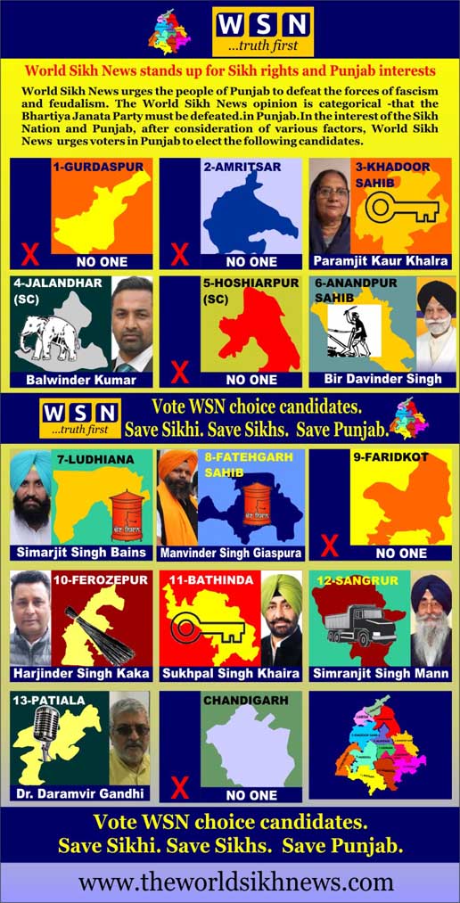 ![Who should Punjab voters elect on 19 May? World Sikh News urges the people of Punjab to defeat the forces of fascism and feudalism. WSN benchmarks for choice are interests of the Sikh nation, concerns and desires of the people of Punjab, defeat of fascist forces, building alternatives to opportunists within the Sikh community which have led the Sikh community and the state of Punjab on a path of destruction, snubbing populism and nepotism and crushing rising pseudo-sainthood in and […]](https://www.theworldsikhnews.com/wp-content/uploads/2019/05/WSN-Cadidates-360x270.jpg)